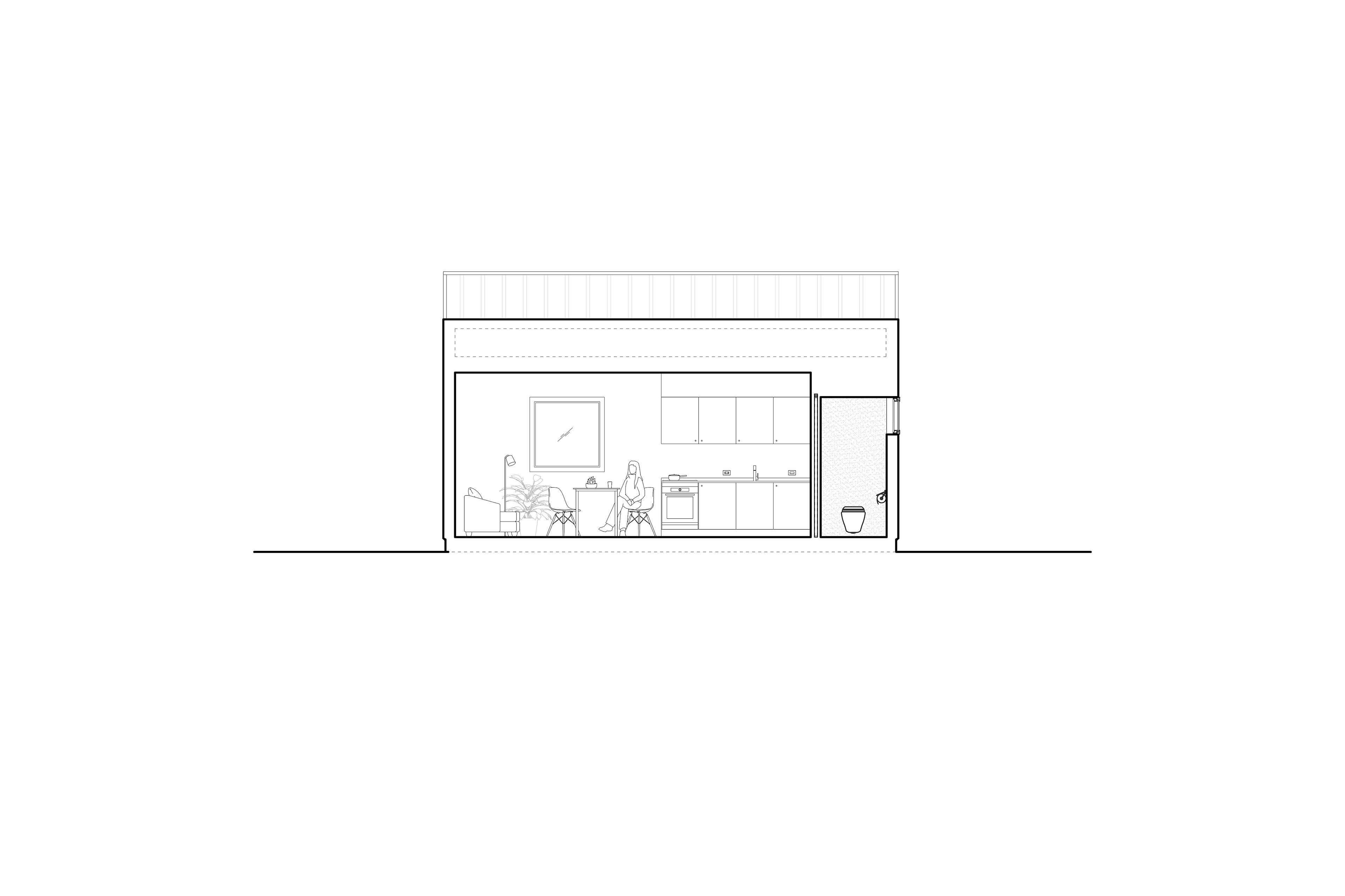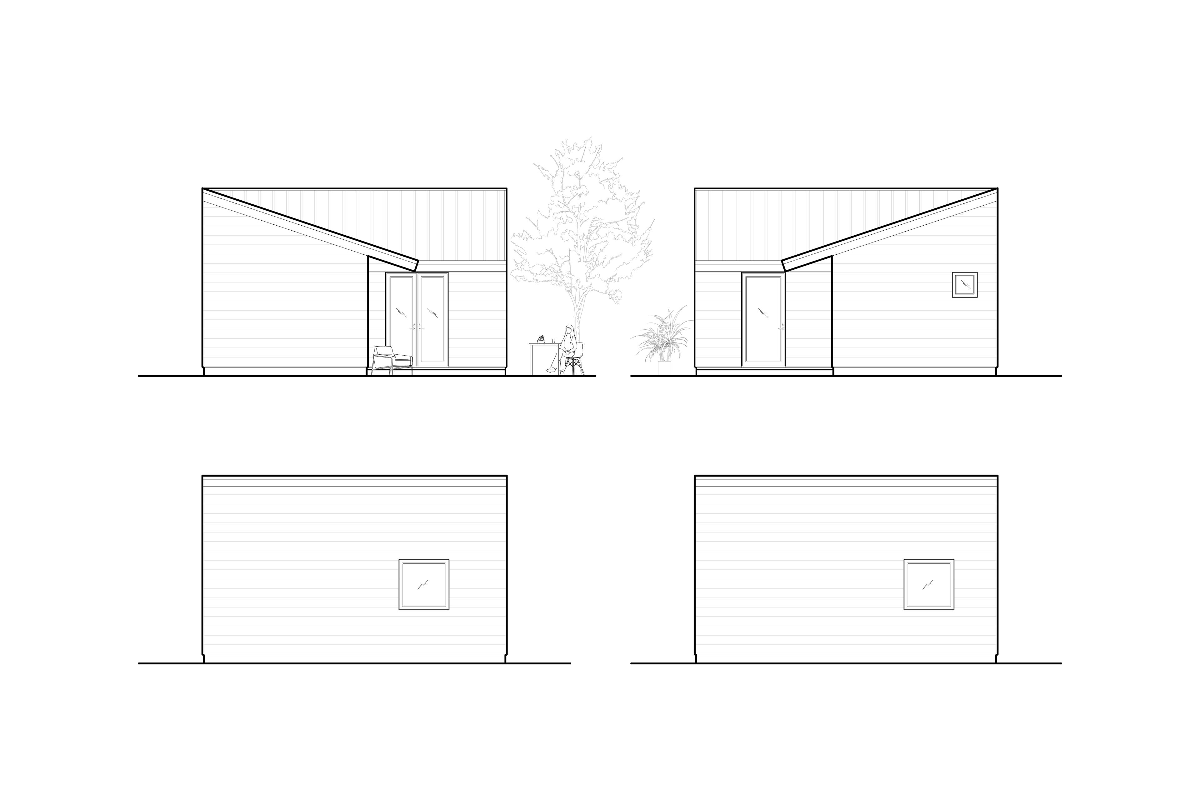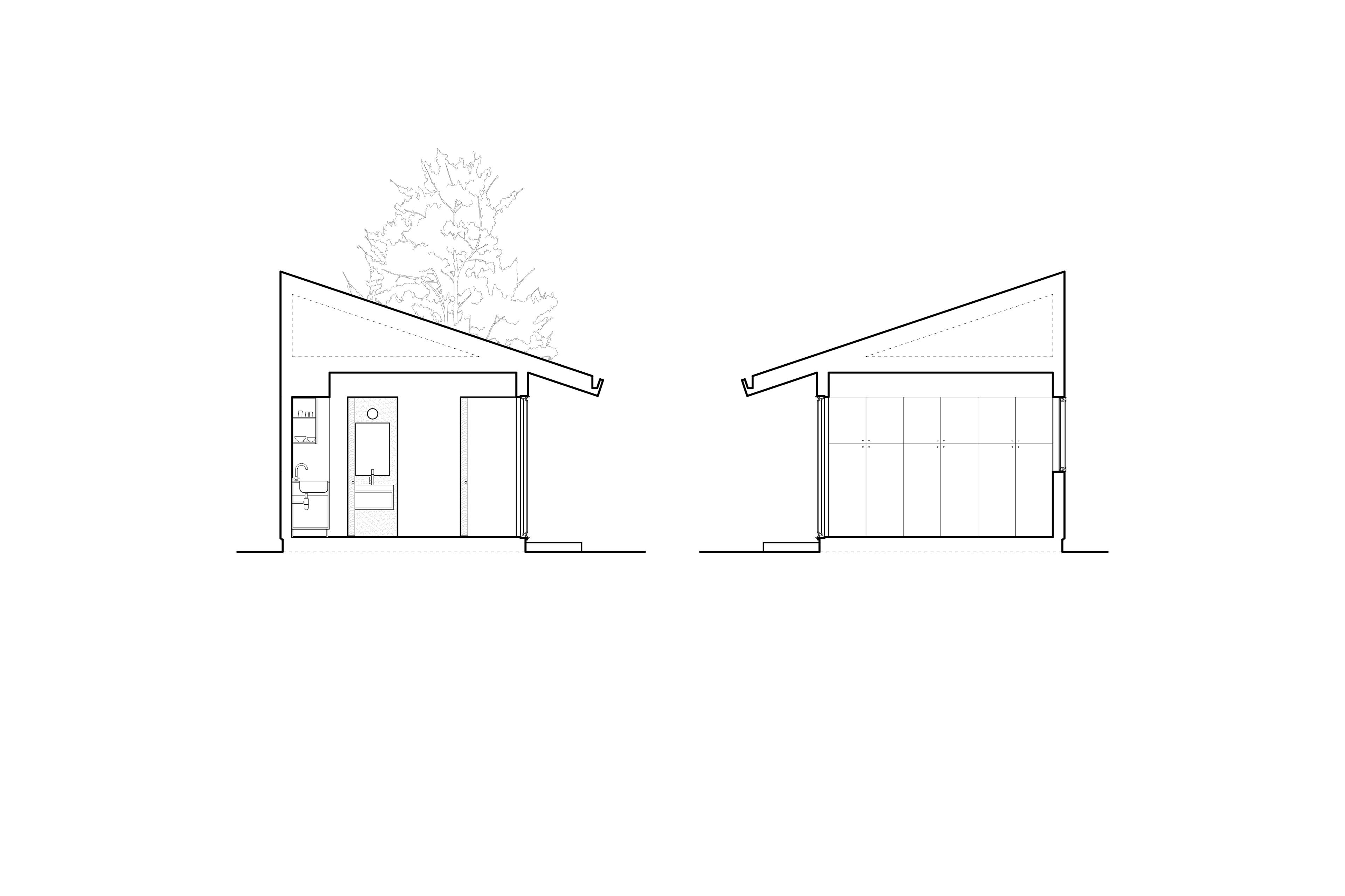The accessory structure also serves as a space to host guests without infringing on the homeowners’ modest 2 bedroom, 1 bathroom primary residence.
