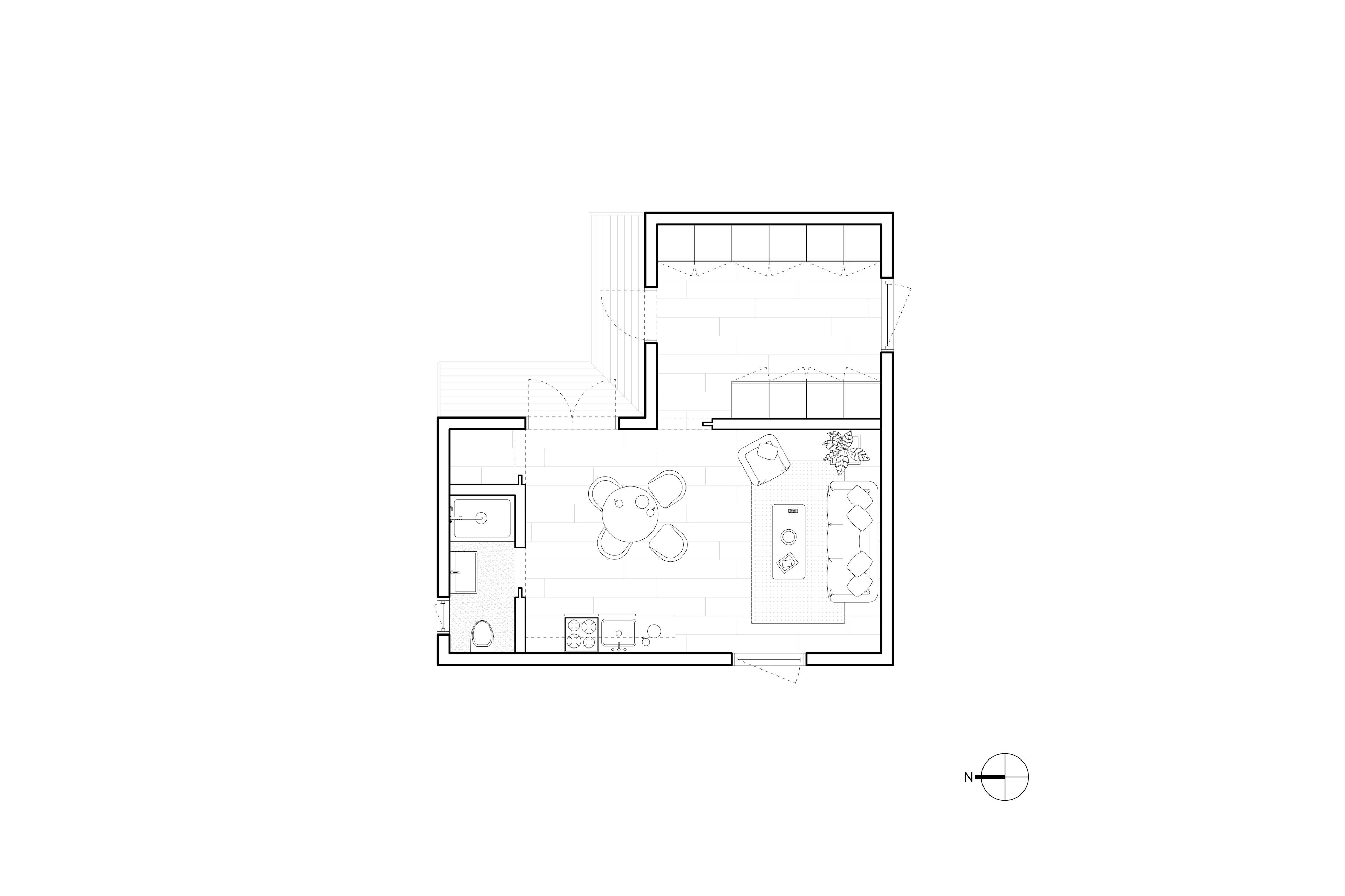 This multi-functional unit was designed with present and future uses in mind. With a corner-hugging, L-shaped layout and integrated wood deck, the small-but-mighty space replaced an old garage to create more living area in the backyard.